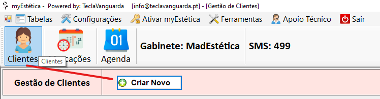 Na barra de menu clique em Clientes e depois em Criar Novo.