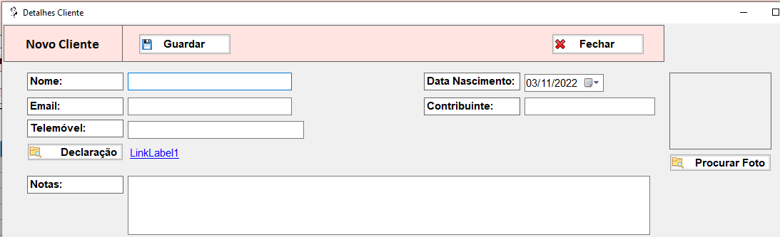 Na nova janela introduza os detalhes do cliente, pode também adicionar uma foto, e.g. do corte actual do cliente, uma declaração e.g. um formulário de isenção de responsabilidade e notas gerais sobre o cliente, e.g. preferências.