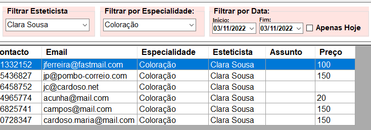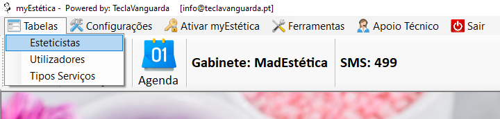 Na barra de menu clique em Tabelas e depois em Esteticistas.
