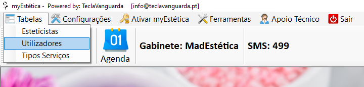 Na barra de menu clique em Tabelas e depois em Utilizadores.