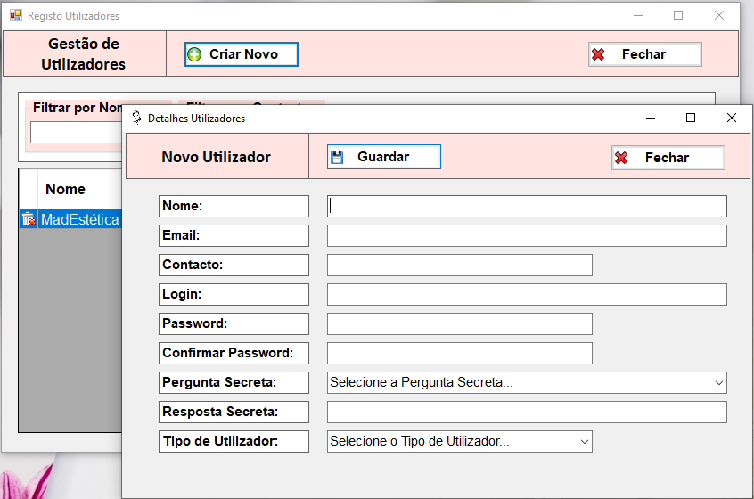 O myEstética está pronto a ser usado, o primeiro passo é adicionar colaboradores à tabela de esteticistas.
