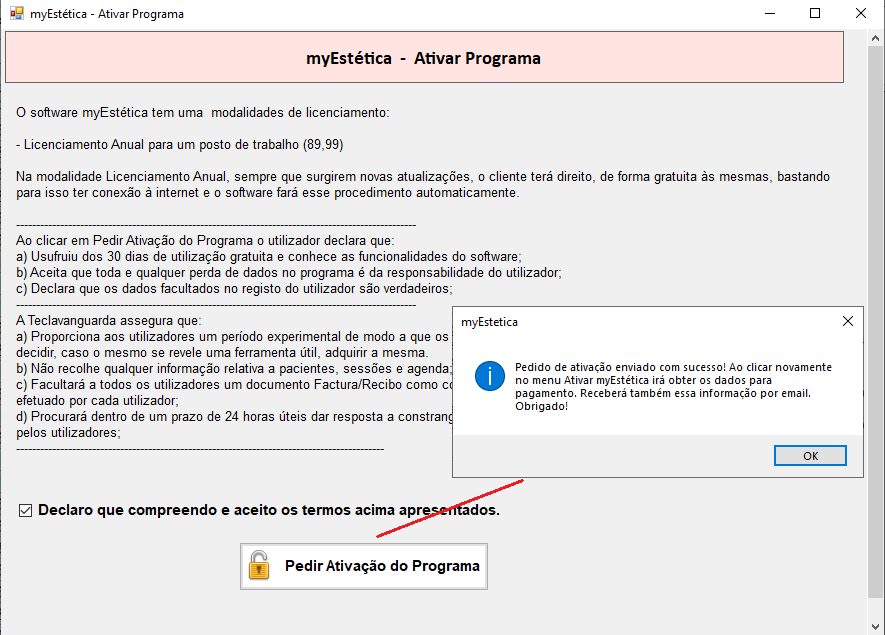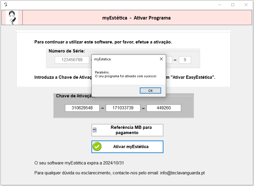 Após o período de avaliação para continuar a usar o myEstética terá que efectuar a ativação do produto.