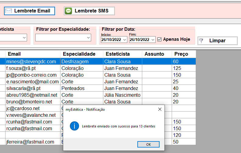 por datas ou marcando a opção Apenas Hoje bastante útil para enviar um lembrete a todos os clientes do dia.