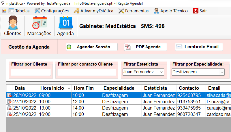 Com uma filtragem avançada pode encontrar uma sessão ou cliente num piscar de olhos. Filtre por Cliente, Contacto, Esteticista, Especialidade e Data.