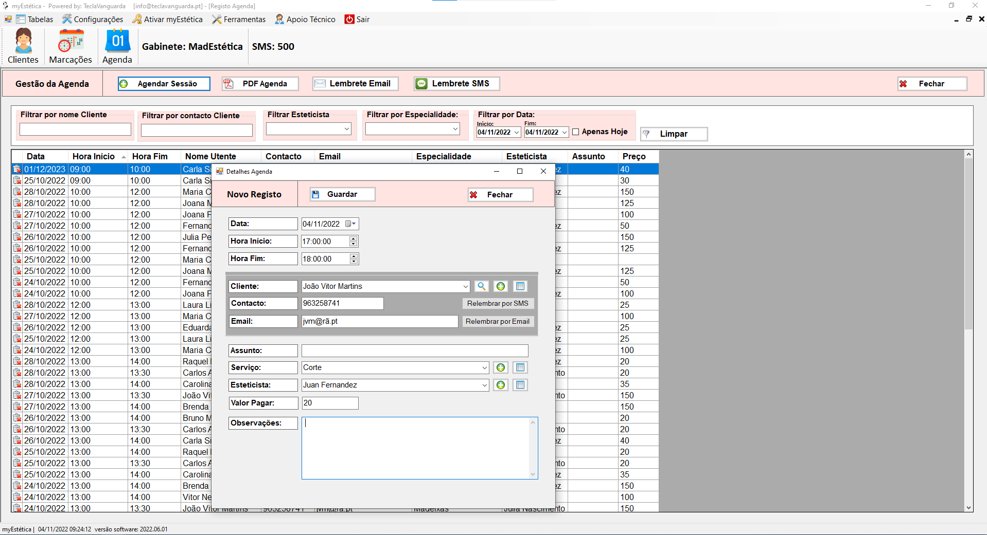 Reduza o número de ausências enviando notificações por email ou SMS a relembrar agendamentos. Notifique os seus clientes sobre alterações, promoções ou até mesmo mensagens personalizadas de aniversário. Usufrua de 500 SMS gratuitas na compra do software myEstética.